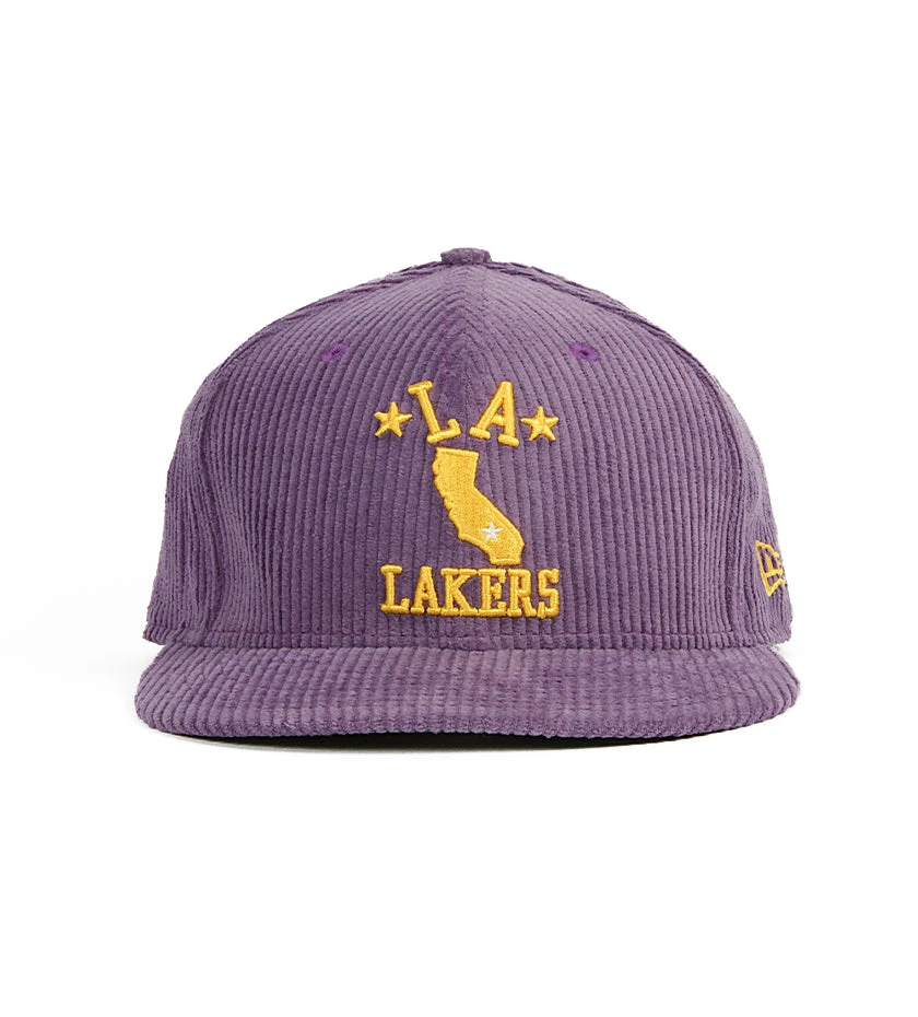 Proper x New Era Los Angeles Lakers 9Fifty Snapback – Purple Corduroy / Green Underbill